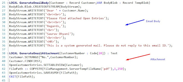 ============== Hi Readers, Today I would like to discuss a simple feature that Microsoft is working to be a part of standard NAV or I would say developed a Pattern for, but most of us are still using the old customizing ways which are hard as well as confusing to other developers. The Pattern in Developed and Enhanced from Microsoft starting NAV 2015. In today's article we will discuss how to use the pattern if we want to send an email from NAV and the in the future article we will discuss other enhancements which can be used instead of customizing NAV. The idea is Simple - Using base approach and Customize Less, Saves Cost to Customer and hassle for other developers. Your comments are awaited for future articles. ** This pattern is available from NAV 2015 onwards but for demo, we will be using in NAV 2017. A new Table and Codeunit have been introduced in NAV for email pattern. Table - 9500 - Email Item. Codeunit - 9520 - Mail Managment. It take care of most of the things, some of them are listed below -