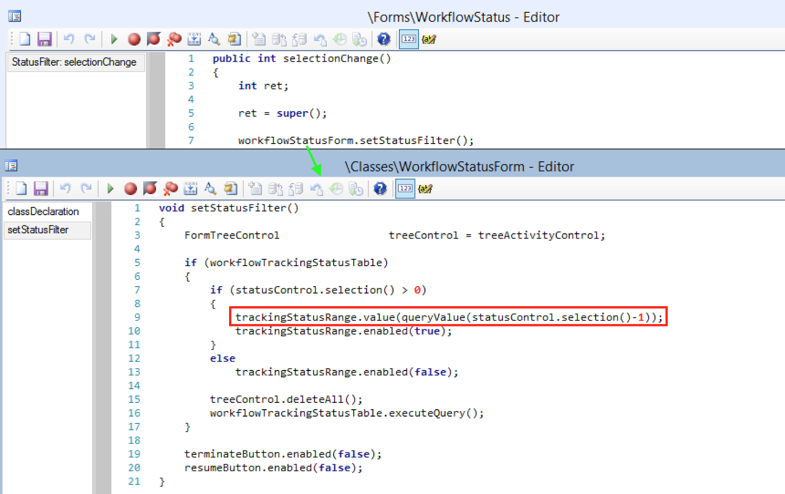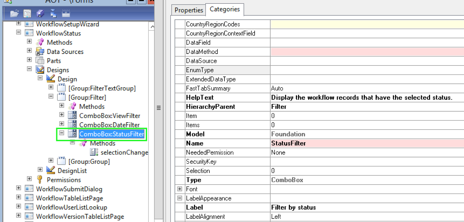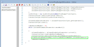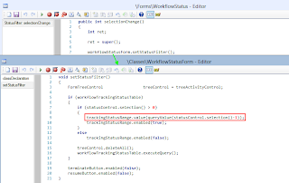 Note: In this case a map to store a relation between control and enum values is not created. It is not an optimal solution, because enum values can be out of range 0..(number of elements - 1) and the following code in WorkflowStatusForm.setStatzsFilter method may fail (marked in red):